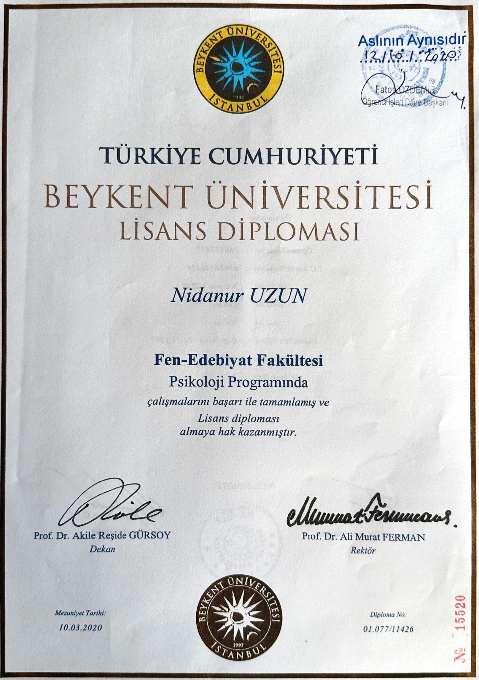 Beykent Üniversitesi Psikoloji bölümünden mezun oldum. Lisans bitirme tezimi çocukların akıl yürütme becerilerinin problem çözme becerileri üzerine yazdım.